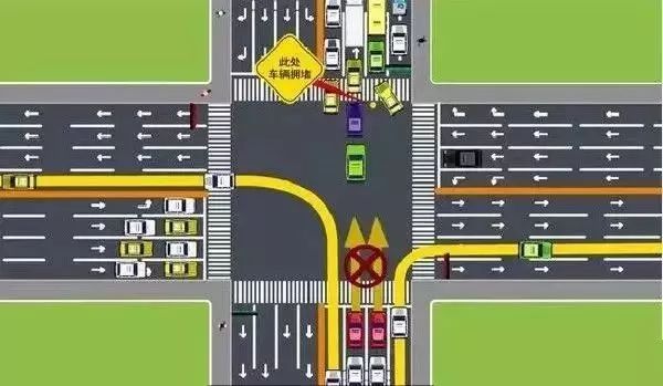 遇到前方交叉路口有交通阻塞時,應當依次停在路口以外等候,即便是綠燈也不能通行。