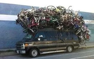 載客汽車載物,裝載的長度、寬度不得超出車廂;車頂行李架載貨,從車頂算起高度不得超過0.5米。把自行車站在車頂上就超高了,罰200元,記1分。
